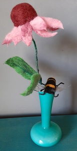 2025Genaaldvilte Rode Zonnehoed met een (losse) bij
